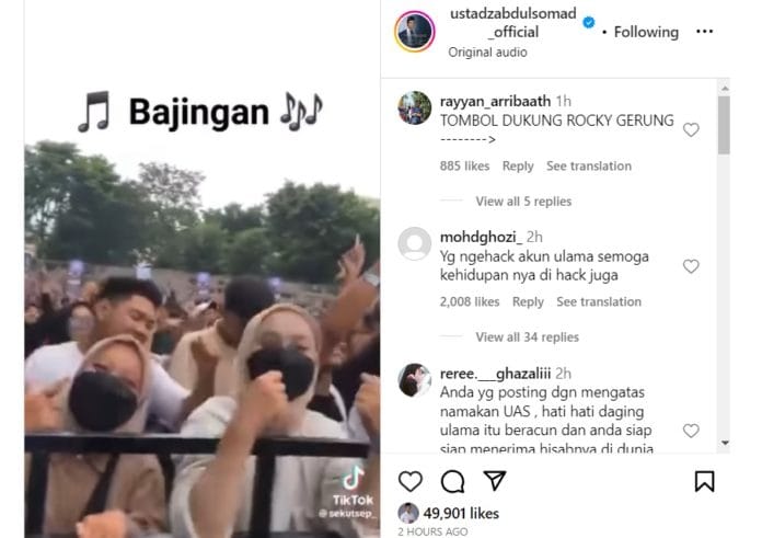 Postingan berisi video dangdutan dengan kata kata Bajing** menjadi ramai dikomentari ribuan netizen. Para pengikut dan netizen meyakini postingan tersebut bukanlah postingan asli dari pemilik akun yakni UAS.