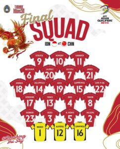Berikut ini daftar nama 23 pemain Indonesia yang dipersiapkan untuk melawan China:
